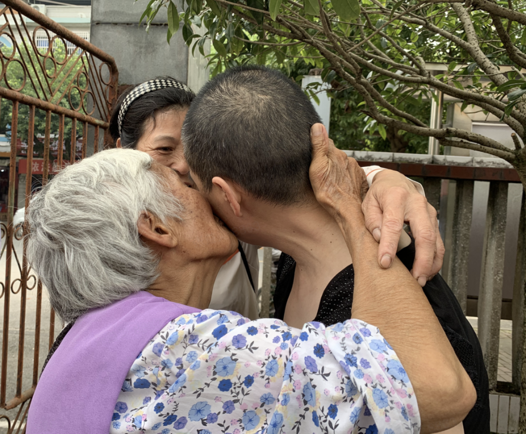 在江西吉安救助站和抖音寻人志愿者的帮助下,走失21年的杨荣珍与家人重逢