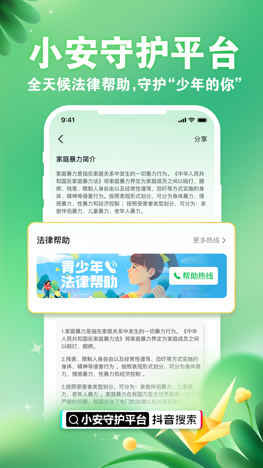 欢迎家长和孩子们在抖音搜索“小安守护平台”,获取更多安全成长知识及帮助信息。