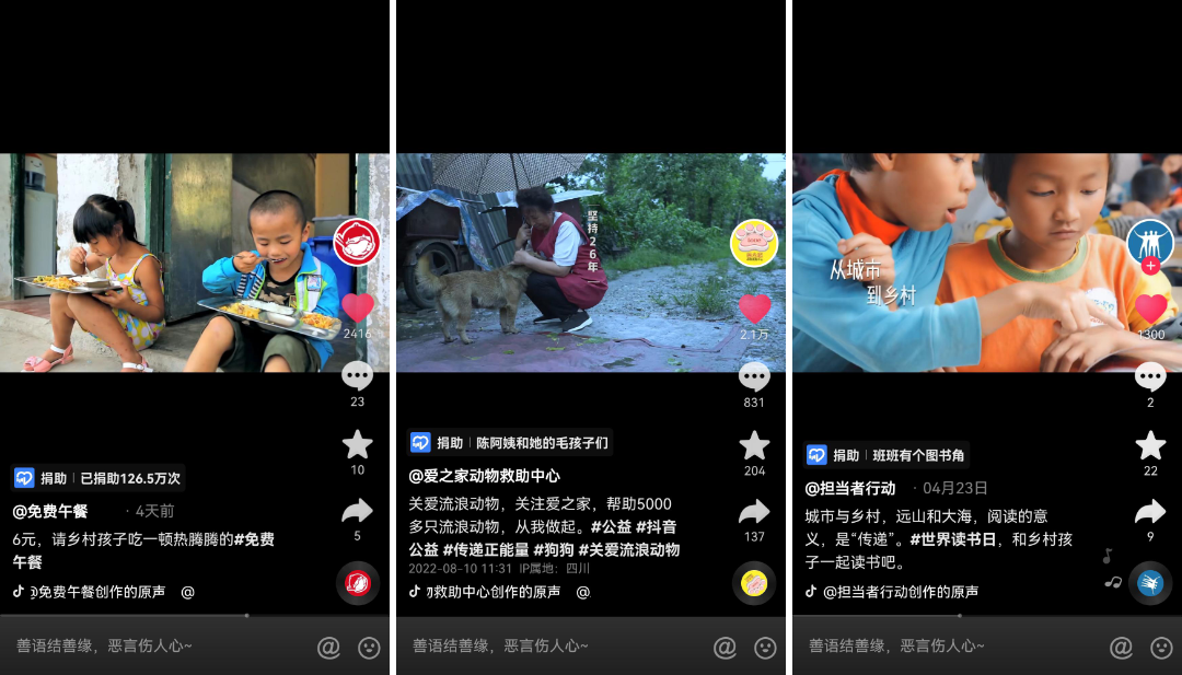 活动期间,“大野蜜探·背锅侠”、“美食米阿米”、“蛋解创业”、“天元邓刚”等10多位抖音千万、百万粉级创作者将进行线下探访,深入公益项目,记录和分享关于开心做好事的瞬间,助力公益项目被更多人看见,带来更多筹款。