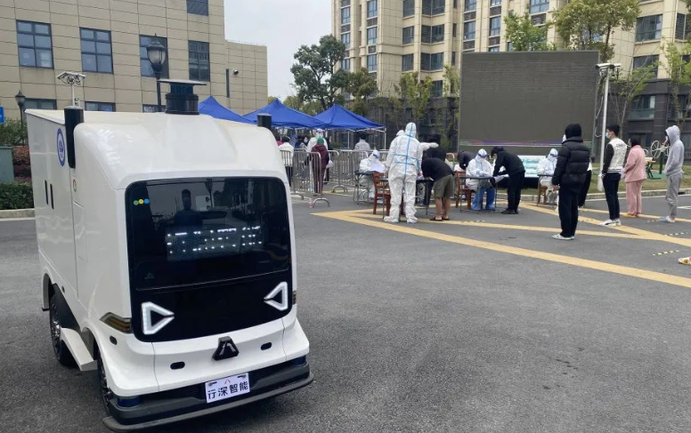 近期上海疫情形势严峻,居民分区封控、足不出户,为确保疫情期间生活物资安全配送,3月30日以来,圆通牵头的物流信息互通共享国家工程实验室联合智能无人驾驶快递车品牌行深智能紧急调运智能无人驾驶快递车,入驻上海多个被封控的居民社区和办公园区,负责区域内点对点快递及其他生活物资配送。园区内人员只需凭取件码自行在车厢内对应的格口内领取即可,实现无接触配送。