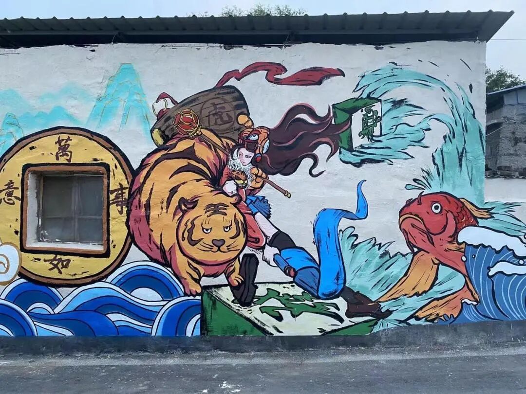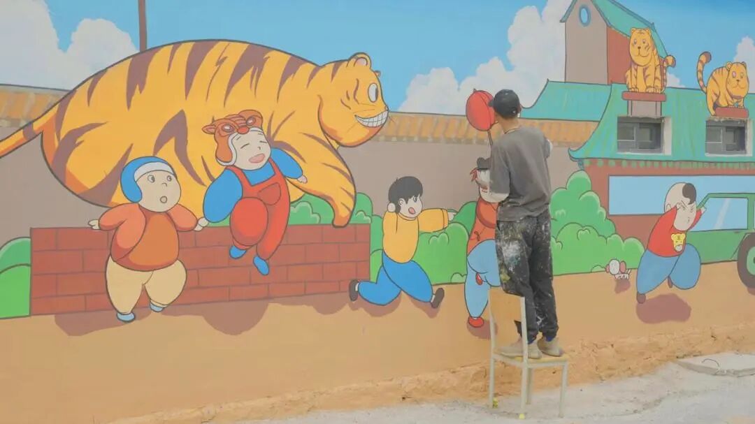 今年春天,「山里DOU是好风光」项目启动乡村艺术计划,来到了河南省鹤壁市淇滨区纸坊村。并邀请了抖音达人尚勤杰(抖音@大新.)为村子绘制墙画,让古老村庄焕发新颜。