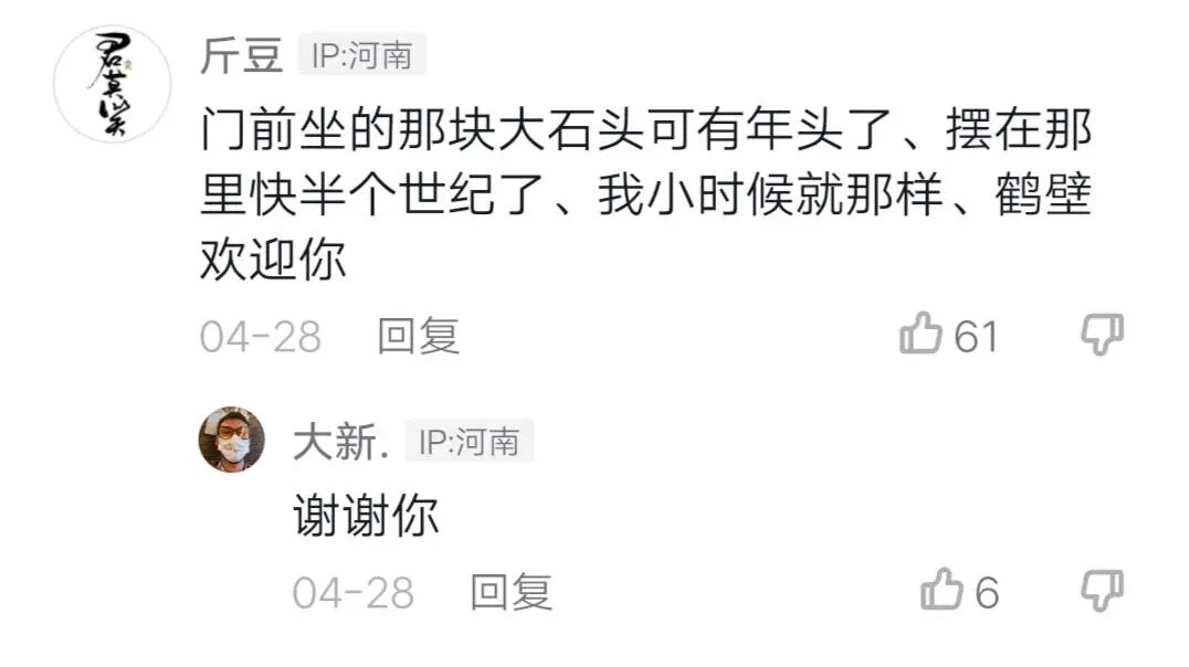 视频唤起了大家对家乡的记忆,一位网友评论:“门前坐的那块大石头可有年头,摆在那里快半个世纪了,我小时候就那样,鹤壁欢迎你。”也有很多人在评论区艾特亲友,计划一同前去打卡大新的画作。不少鹤壁市民慕名驱车前来,“真不错”成为大家与墙画拍照合影时,最频繁挂在嘴边的话。
