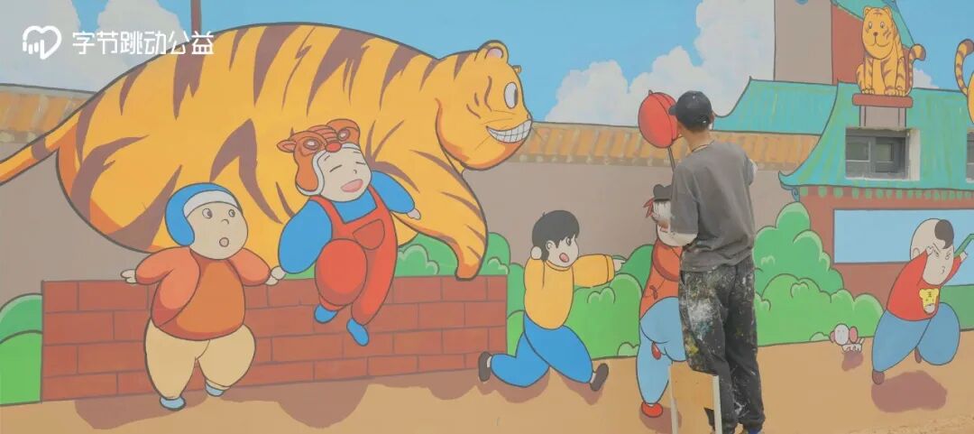 今年3月,字节跳动公益「山里DOU是好风光」项目启动乡村艺术计划,来到了河南鹤壁市。综合交通、旅游资源和经济发展状况,我们选中了纸坊村,并邀请尚勤杰加入项目,为村子作画。