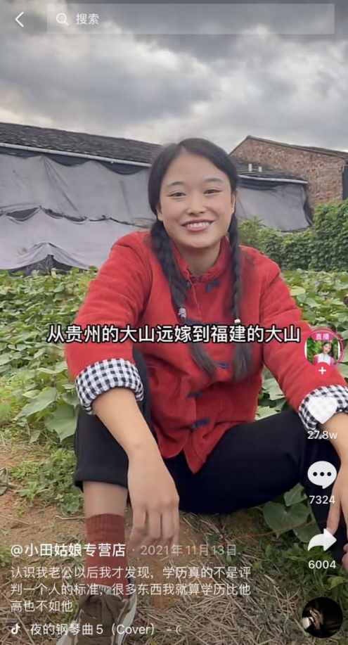 想到就立马付诸实践的小田姑娘,经过时间磨砺和直播实践,从一名在镜头前不会说话的农家女孩变得侃侃而谈,介绍当地的特色产品。如今@小田姑娘的粉丝量已有253万,将家乡特产菌菇销往全国,抖音“山货上头条”上也有她的身影,成为带领乡亲致富的“乡村守护人”。