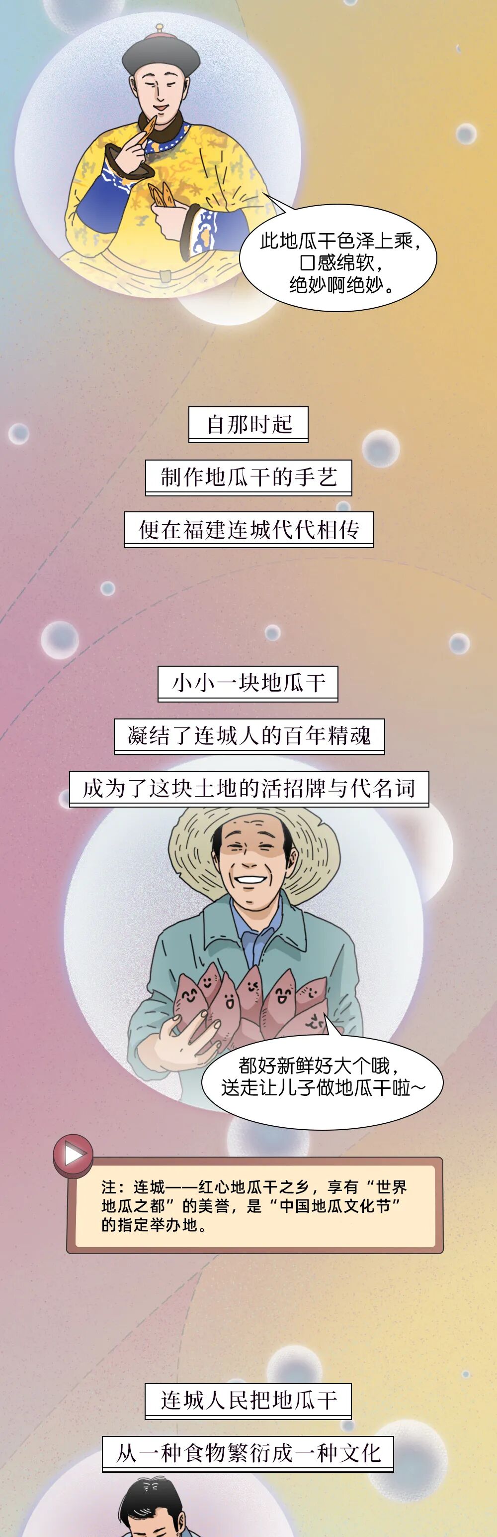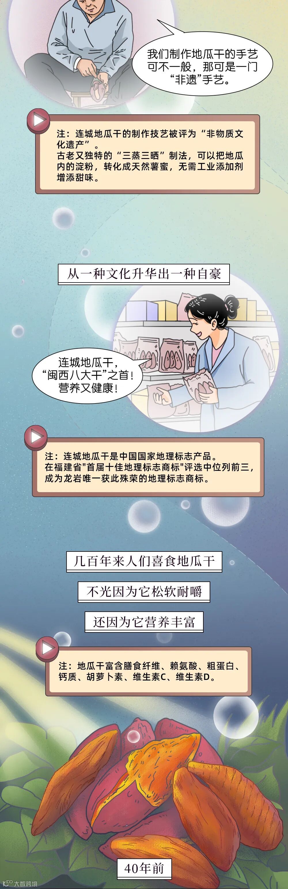 其实,小小地瓜干的背后,还有300年的悠久历史和醇厚文化。下面,一起感受连城地瓜干带来的浓浓乡情吧。
