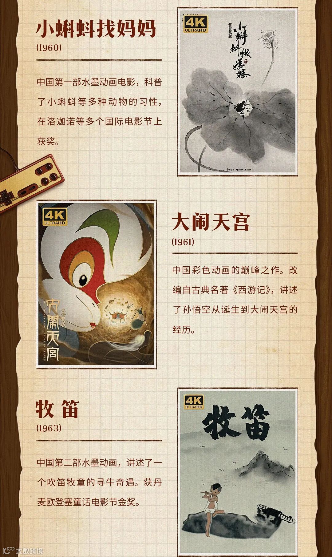 《小蝌蚪找妈妈》是中国第一部水墨动画,取材于齐白石创作的鱼虾等形象。法国《世界报》高度评价这部动画,认为片中景色柔和,笔调细腻,动物们忧虑、犹豫或快乐的动作,富有魅力和诗意。