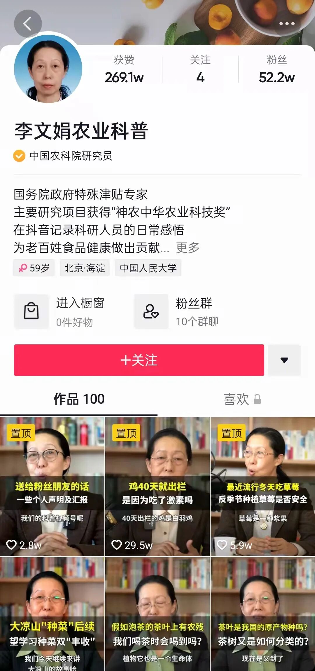 权威农学专家也在抖音上教授三农知识。小到“包菜如何清洗”,大到“卫星下的北大荒创业农场”,中国农科院研究员@李文娟农业科普 通过专业讲解,让不少用户获取到有用又有趣的农业知识。