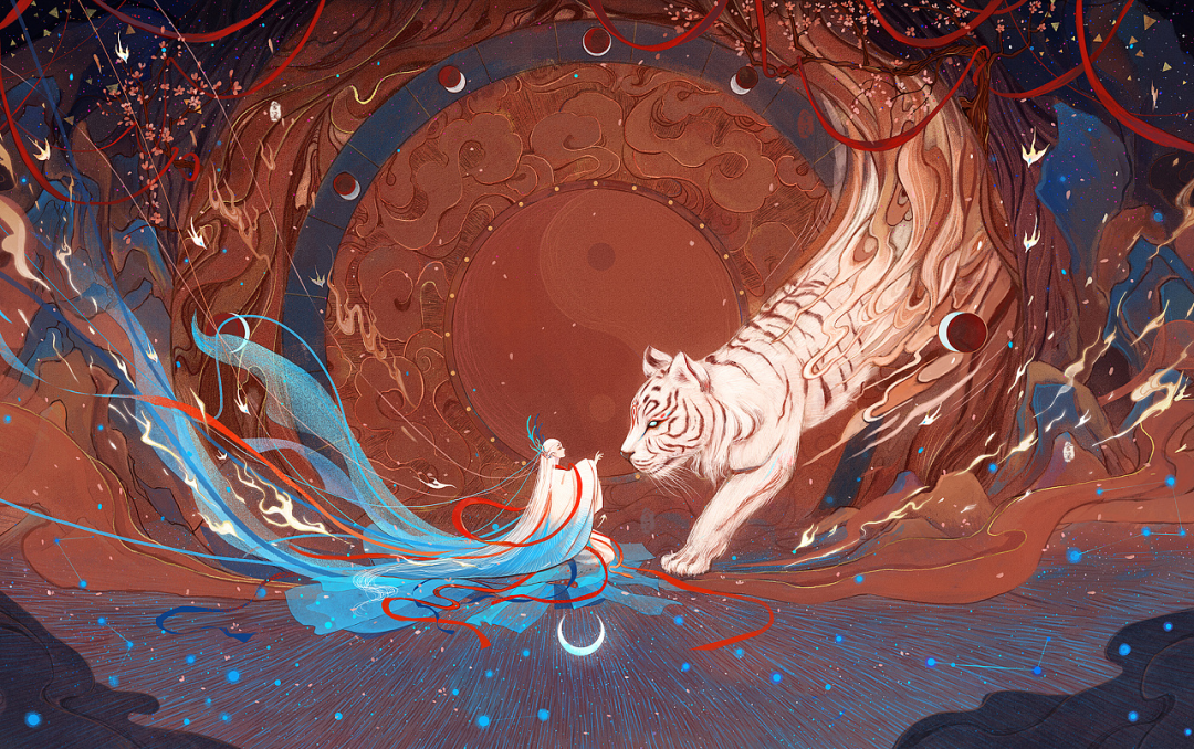 鲜少有人知道,这位擅长绘制古风奇幻风格插画的画师,原来是“半路出家”的。她从小就热爱中国玄幻传说,因为种种原因,大学时候学的却是教育学。但那些浪漫瑰丽的神话故事、光怪陆离的神兽狐怪始终令她心驰神往。