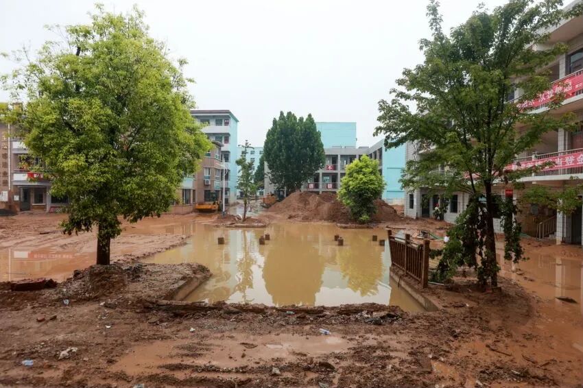 7月20日,河南全省遭遇历史罕见的特大暴雨灾害性天气,巩义市成为受灾最严重的地区之一。作为镇上唯一的一所初中,康店一中受灾惨重。学校围墙倒塌,一旁山上的泥水向着学校倾泻而下,最深处积水超过3米。洪水退去后,1米多深的淤泥堆满整个校园,图书室、餐厅以及一楼所有教室被完全破坏。
