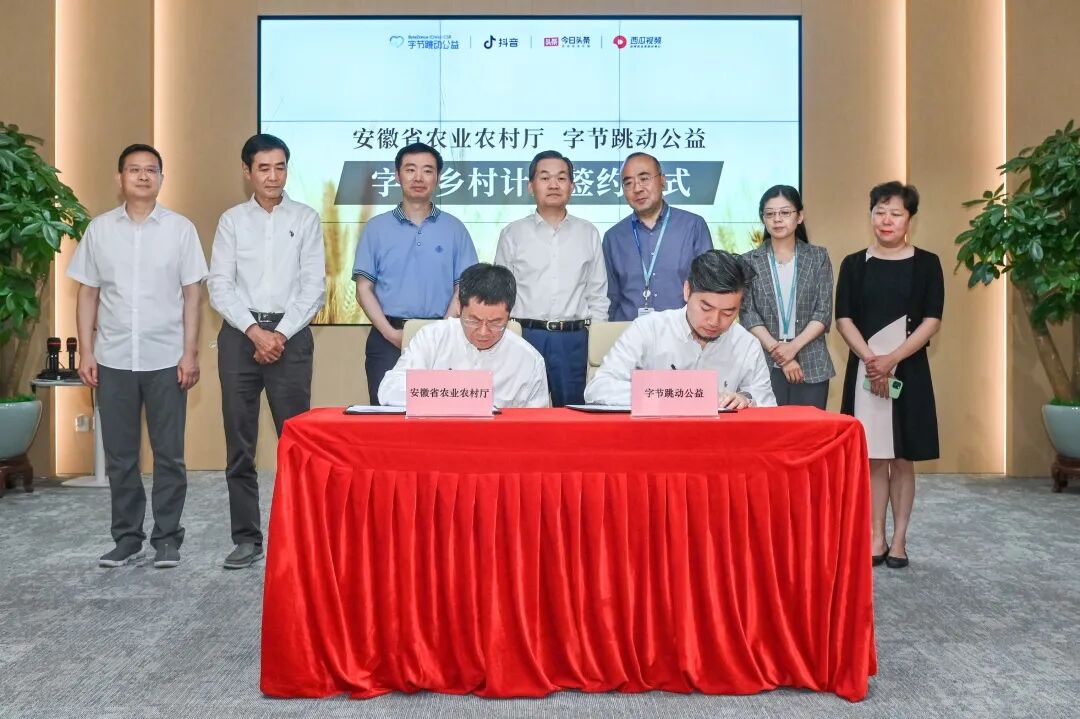 6月15日,字节跳动公益与安徽省农业农村厅签署合作协议,双方将通过“字节乡村计划”,探索建立本地乡村振兴人才培养体系、打造乡村文化旅游品牌、发展本地新媒体产业,助力安徽省乡村振兴。