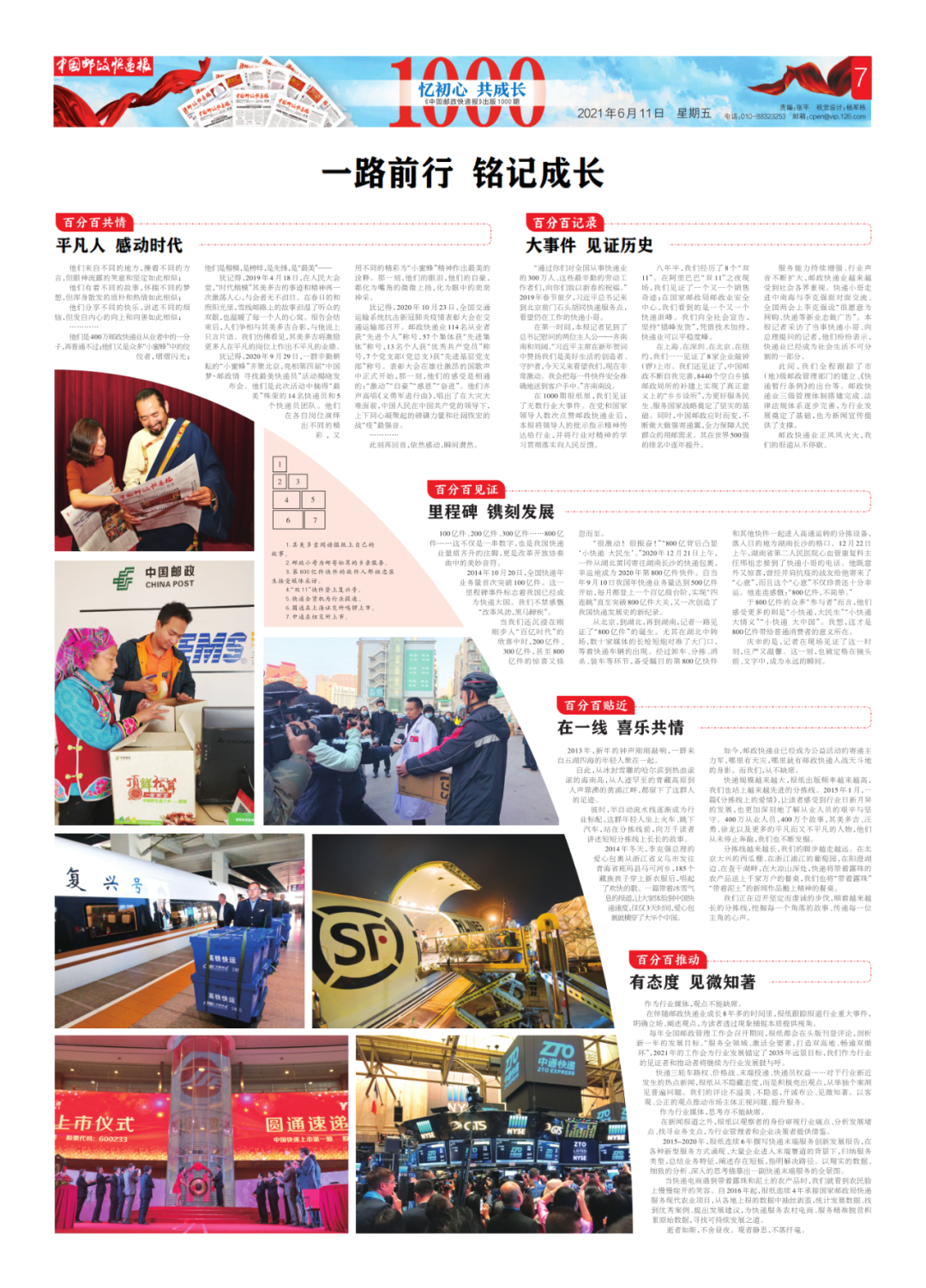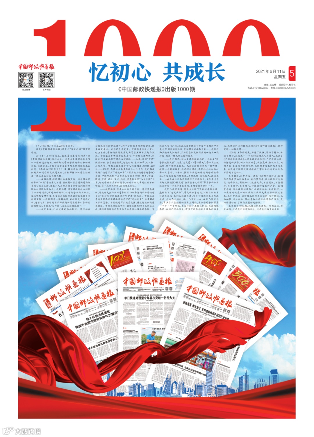 2021年6月11日,《中国邮政快递报》迎来第1000期。8年时间从周一刊已经变成周五刊,当初那棵小树苗已经成为茁壮树木!
