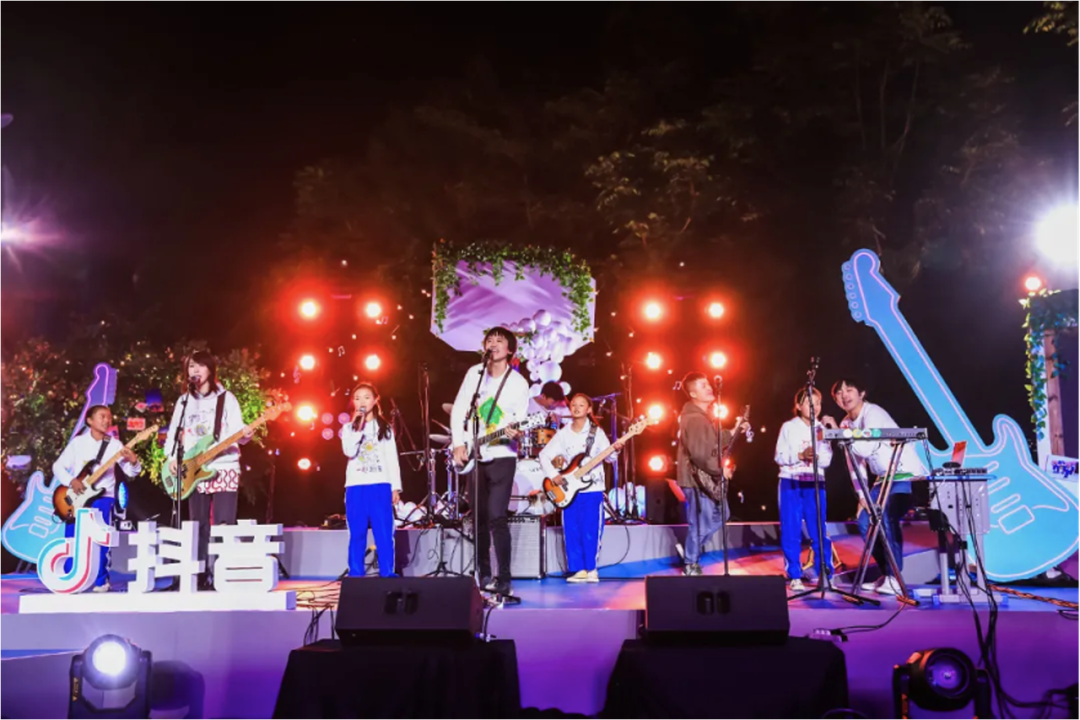 这次演唱会上,这些稚嫩的童声“C位出道”,新裤子乐队成为配角,142万平台用户通过抖音看到了山里娃的摇滚梦。