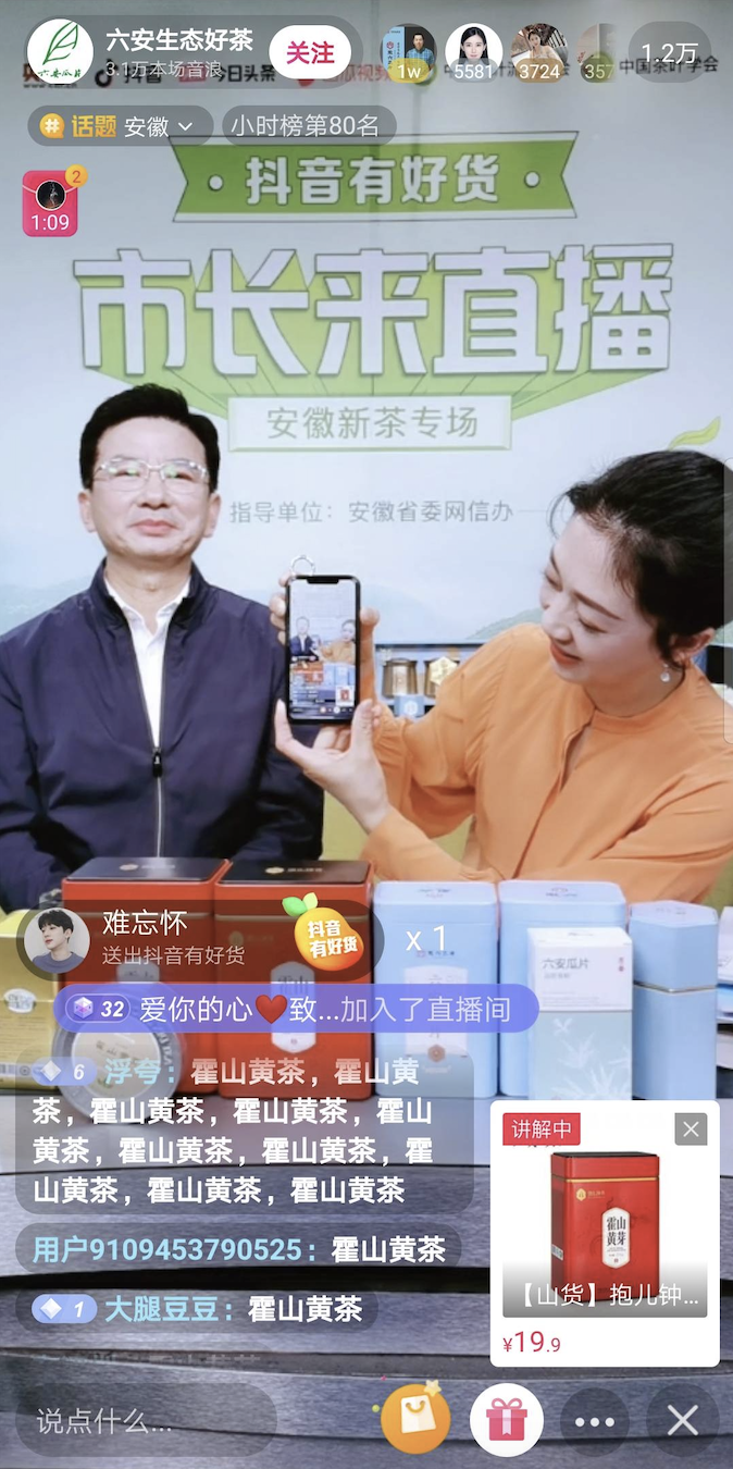 “这杯茶来自六安500里茶谷,它从唐宋走来,漫步于明清宫廷,香气浓,口感好,回味甘甜。”在抖音直播间里,安徽省六安市副市长孙学龙对着镜头向网友们介绍起中国十大名茶之一的六安瓜片。