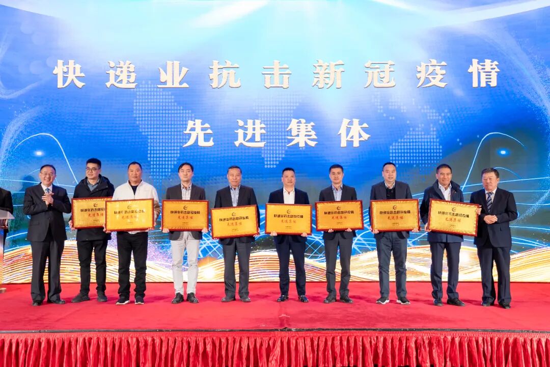 马军胜、高宏峰、戴应军、刘君共同为2020年快递业抗击新冠疫情先进集体和先进个人等奖项获得者颁奖。其中,圆通速递荣获“快递行业抗击新冠肺炎疫情先进集体”,圆通湖北武汉黄埔分公司业务员李兵栋、圆通北京区干线司机孙俊坡、圆通航空机长刘光忠荣获“快递行业抗击新冠肺炎疫情先进个人”。圆通物流信息互通共享技术及应用国家工程实验室研究员丁桂花主持编写的《突发公共卫生事件下应急供应链体系建设研究》还荣获2020年度邮政行业科学技术三等奖。