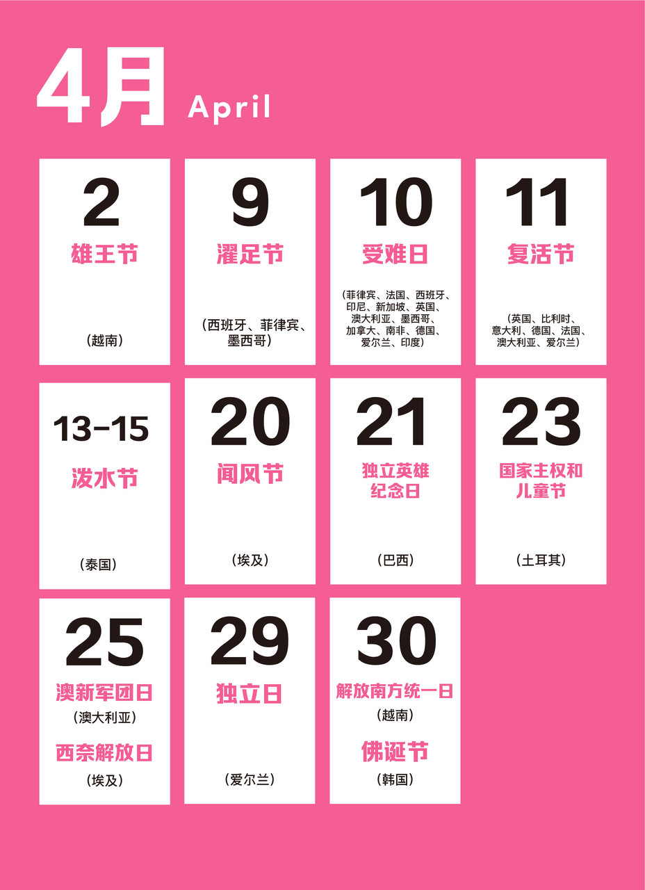 4月里,另一个全球范围的重大节日就是复活节了。4月11日,在受难日 (Good Friday)之后,英国、比利时、意大利、德国、法国、澳大利亚、爱尔兰等国家的ByteDancer都将进入复活节假日。虽然复活节曾被定在每年春分月圆之后第一个星期日举行,但东西教会的复活节日期和习俗并不相同。复活节最广为人知的标志要属复活节彩蛋和复活节兔。