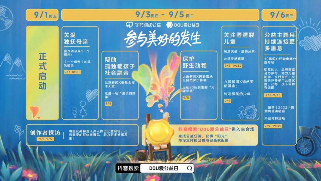 除了公司的内部活动,字节跳动公益平台最近也启动了9·5“Dou爱公益日”,邀请所有用户一起传递善意、与爱同行。