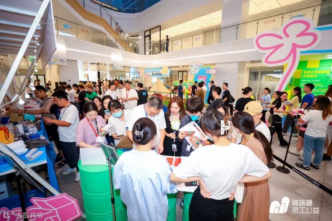在字节跳动工区,ByteDancer们还组织了跳跳糖公益市集。员工们可以在市集购买业务和个人捐赠好物,在低碳打卡区参与低碳打卡,购买ByteMall字节商城爱心好物,参与公益音乐会......