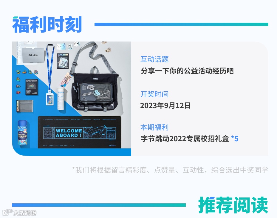 9月5日可能是有点特殊的一天。但每一个ByteDancer都会持续释放善意和美好,让“好事”发生在每一天。