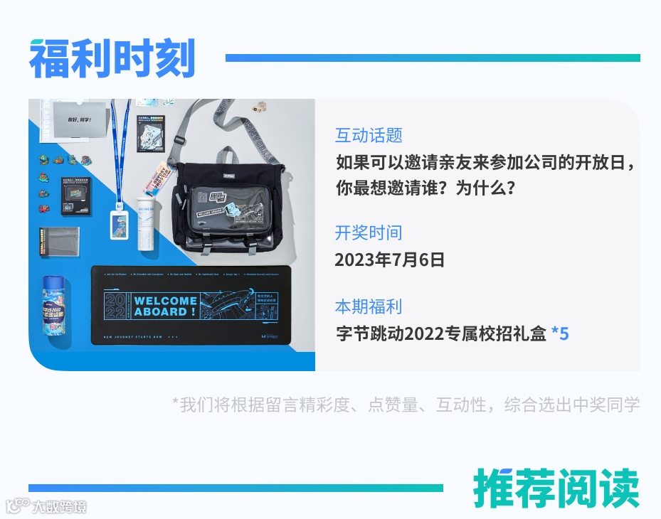 一千个亲友眼中,有一千个字节跳动,希望开放日的惊喜之旅能在每一位 ByteDancer 亲友心中“创造”出独一无二的记忆。