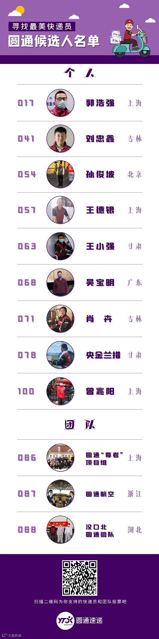 目前,有12名圆通个人/团队入围,扫码进入投票页面,为圆通加油!