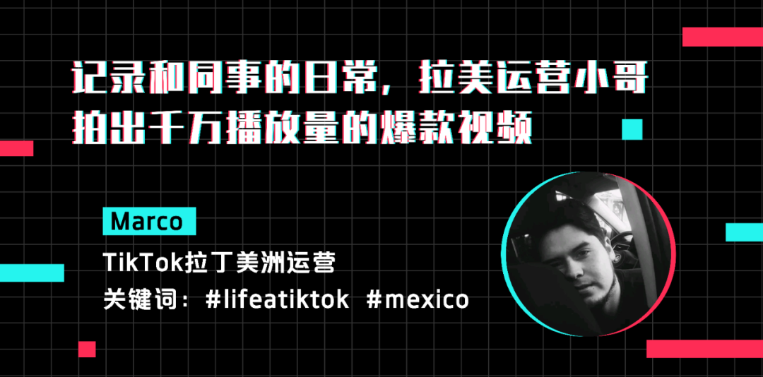 Marco是TikTok拉丁美洲地区的内容运营,常驻墨西哥城。还没入职字节跳动时,Marco就在运营自己的TikTok账号,如今他坐拥13万粉丝。