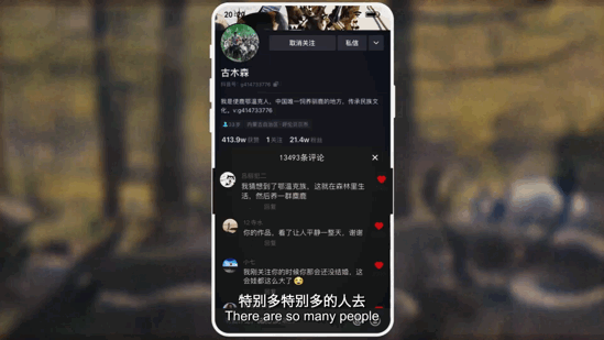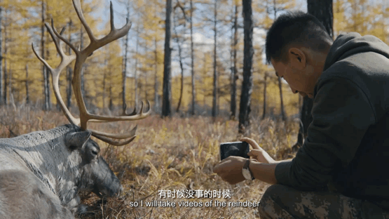 等有信号的时候,古木森会刷抖音。看抖音上各种少数民族的创作者分享自己家乡,他也开始拍驯鹿。