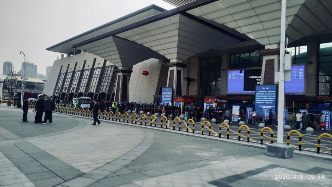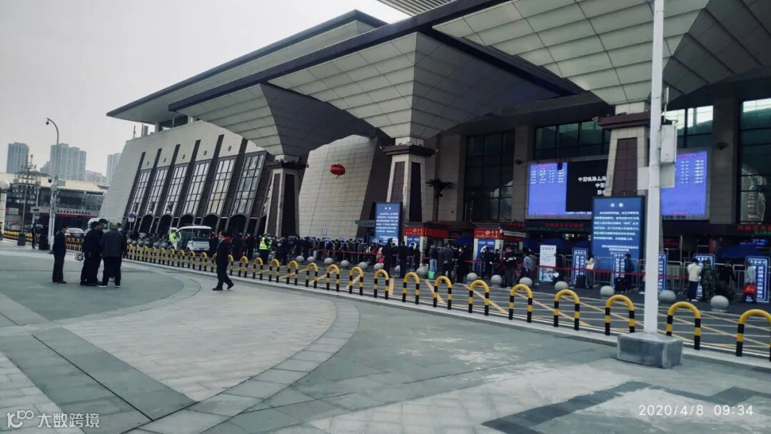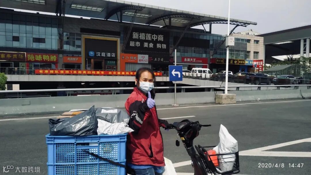 解封第一天,圆通武汉武昌火车站分公司业务员许金香在武昌火车站商圈派件