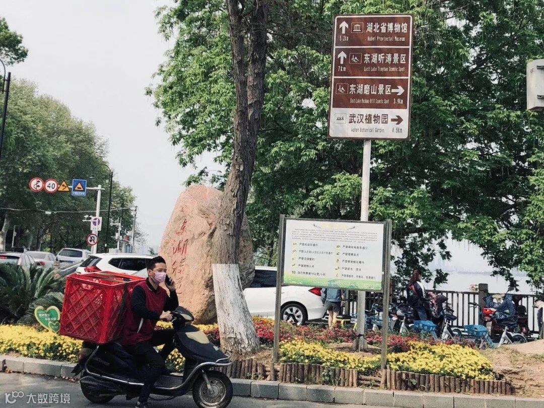 解封第一天,圆通武汉大学分公司业务员靖辉在武汉大学东门派件