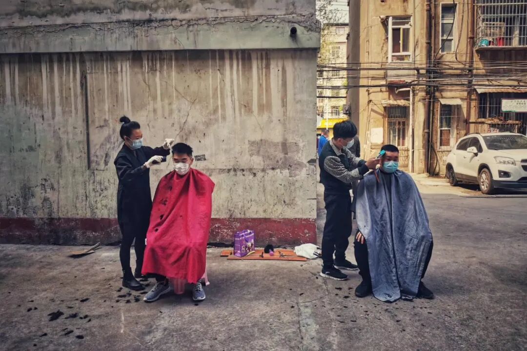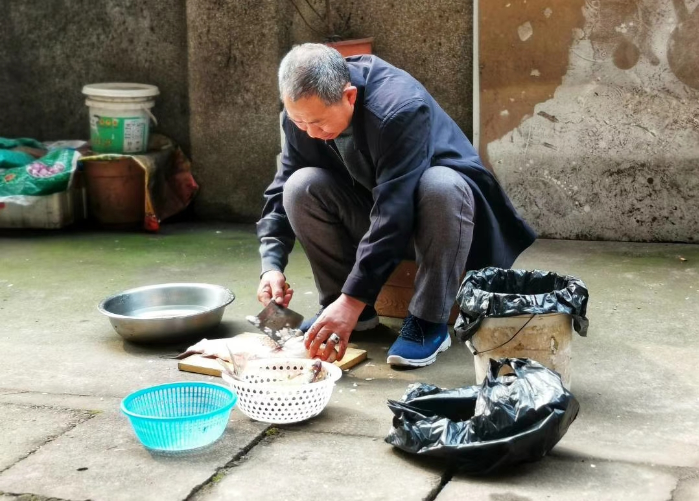 武汉市井-复兴村老小区居民在理发、杀鱼
