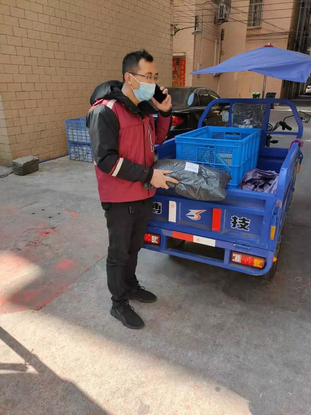 圆通广州科学城分公司:春节期间,每天为客户寄送千余票生活用品,为保障安全,根据政府要求,都安排到小区门口自提。办公场所每天消毒,小哥们都有安全口罩,进出都会消毒。