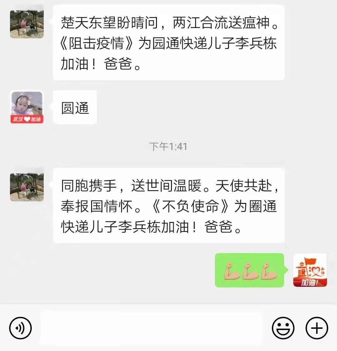 带着家人亲友的嘱咐与问候,圆通人继续驰援战“疫”、逆行送件,我们坚信,没有一个春天不会到来。
