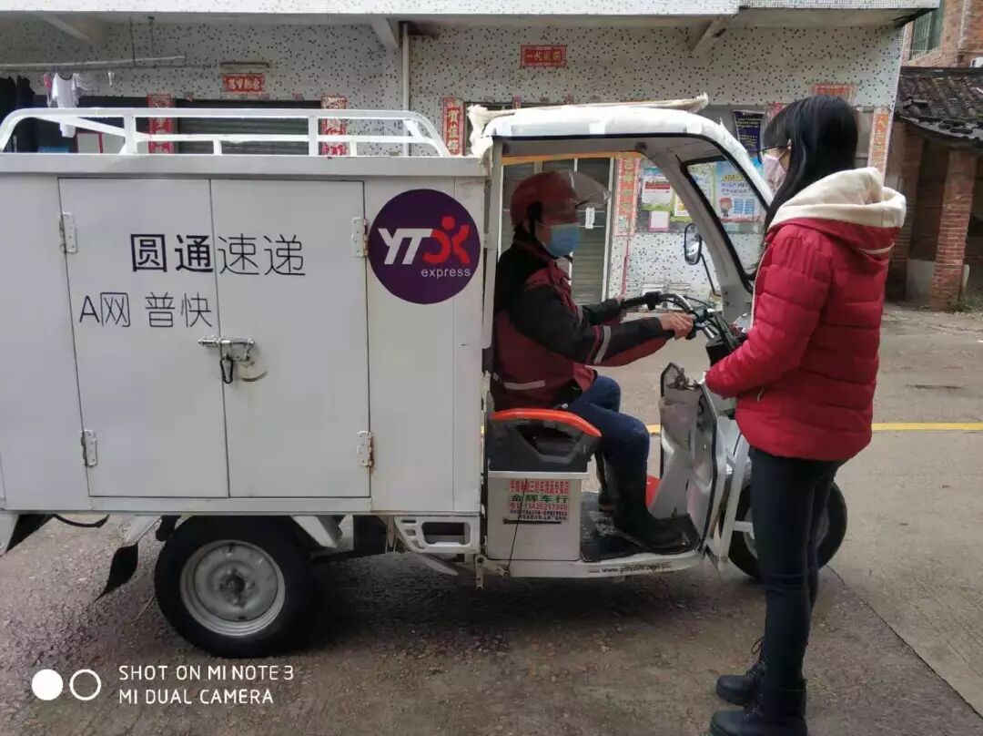 圆通广东清远新城分公司新站分部快递员何灿球,正准备去派件,妻子成飞霞关心丈夫安全跑到路边叮嘱自己老公:“现在肺炎疫情严峻,你的工作接触性广泛,一定要勤洗手,戴口罩,尽可能在服务好客户的同时保护好自己。”