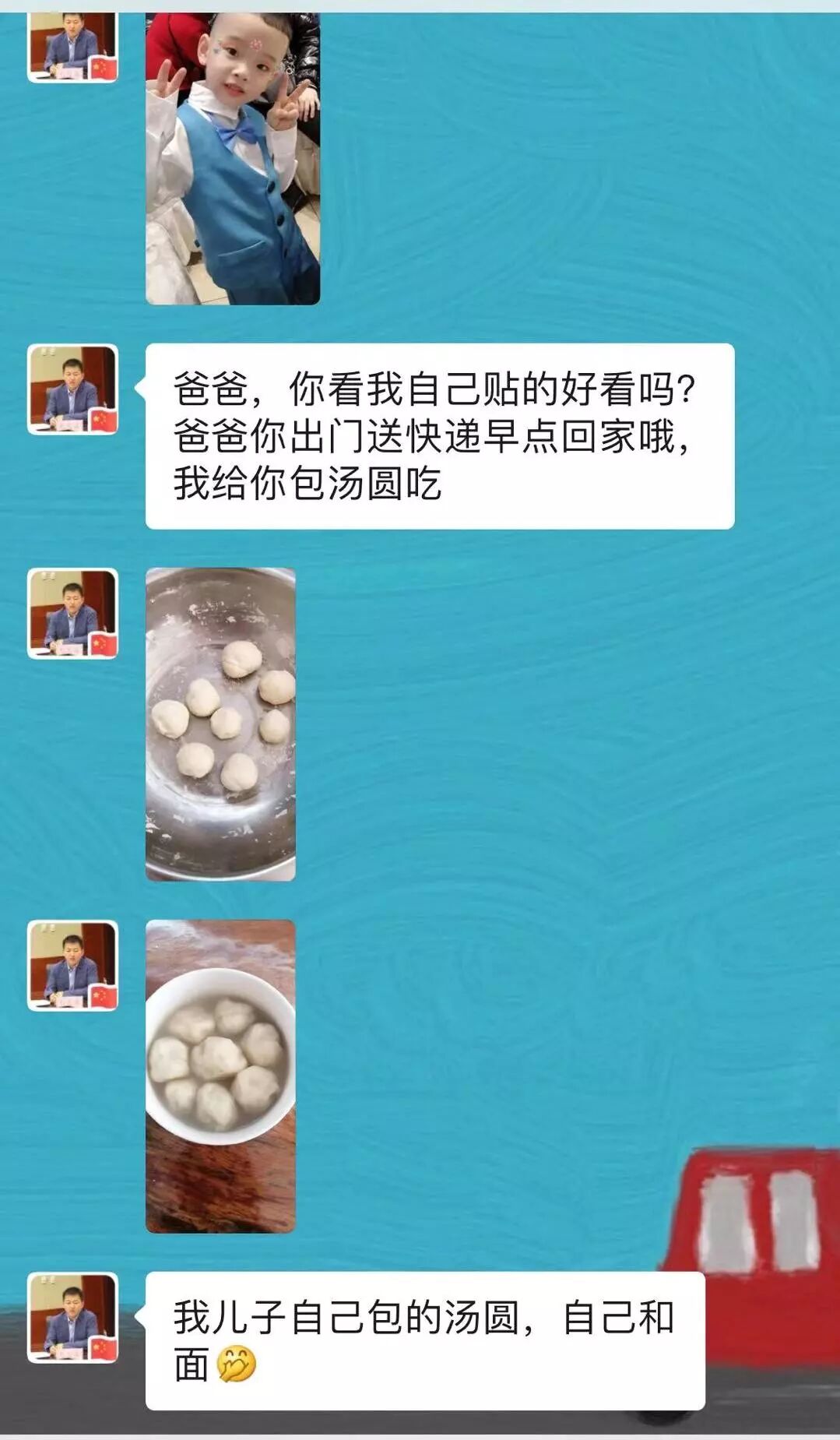 圆通吉林省延边敦化分公司负责人刘忠鑫的儿子,在家给他包汤圆,“爸爸,你出门送快递早点回家哦,我给你包汤圆吃。”