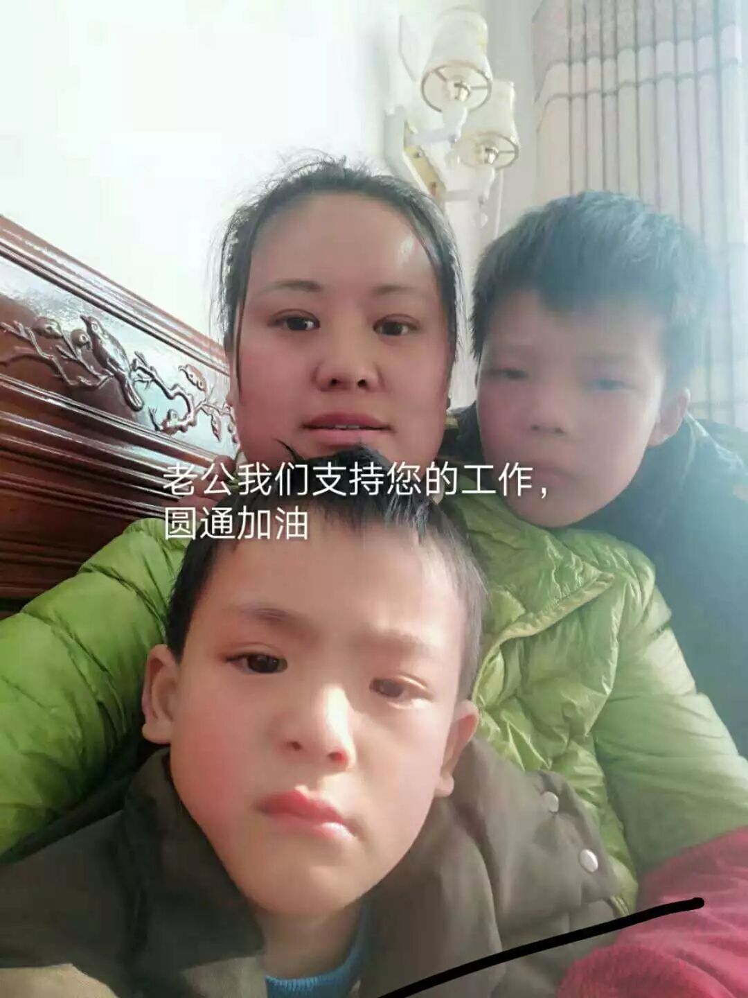圆通广州科学城分公司业务员马毛朵的妻子对他说,“保重身体,好好跟圆通老板干活,安心派好件,认真做好工作,服务好广大客户。”同在一个公司工作的贺香金也收到妻儿的祝福,“老爸,您辛苦了,在外照顾自己,加油!”