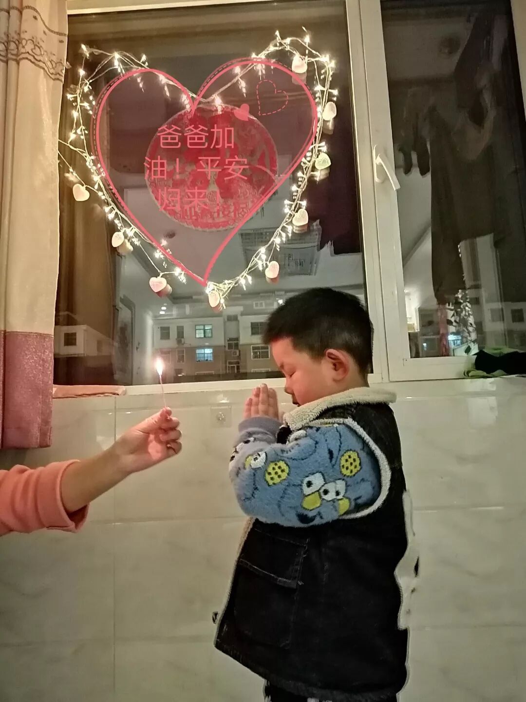 “爸爸,等你回来,我包汤圆给你吃~”