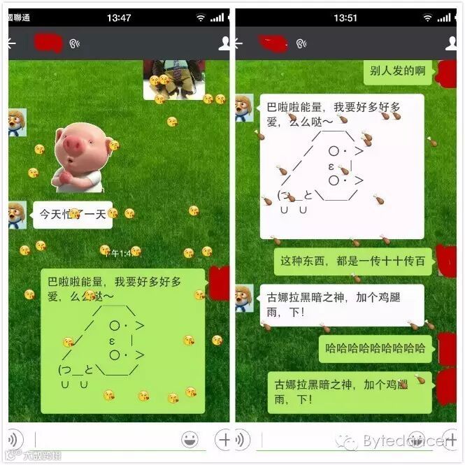 微信出现了奶瓶咒语、鸡腿咒语、亲亲咒语……表情雨跟红包铺满微信群;