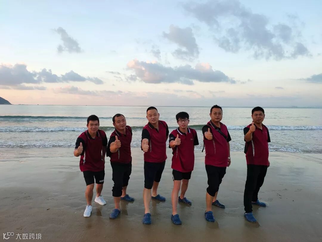 王聪(右二)等6名圆通小哥作为菜鸟裹裹优秀业务员代表前往海南度假