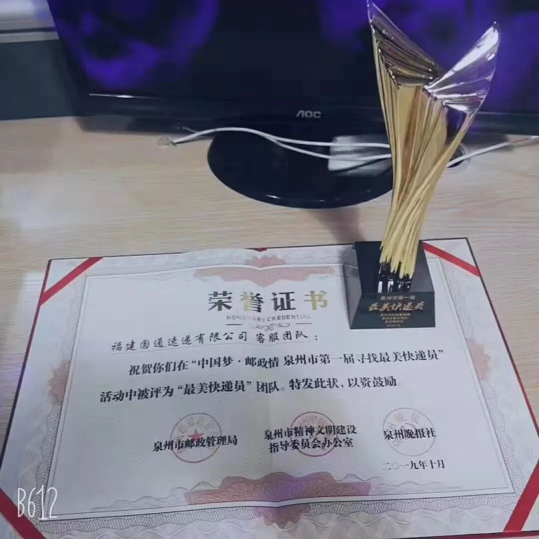 10月31日,在“中国梦·邮政情”泉州市第一届“寻找最美快递员”活动揭晓发布会,圆通福建客服团队以其优质的服务与团结协作的精神荣膺泉州市首届“最美快递员”最美团队。