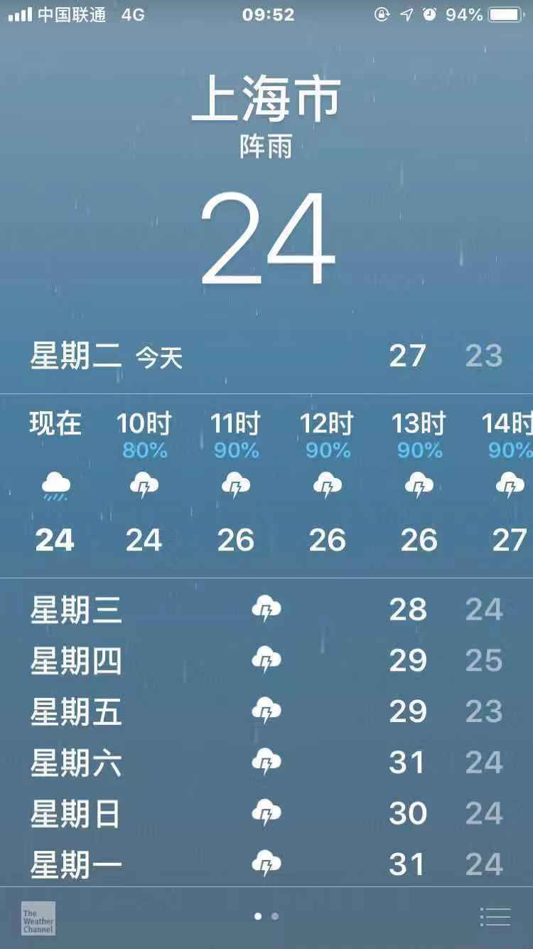 9月5日 星期四:阴转雷阵雨,24~28℃