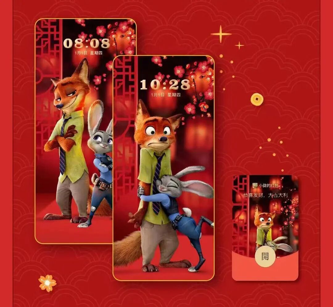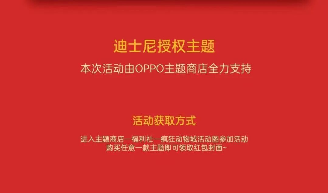 兔年到了,OPPO主题商店携《疯狂动物城》定制主题,来给OPPO互联网服务的粉丝拜年,送红包封面啦!