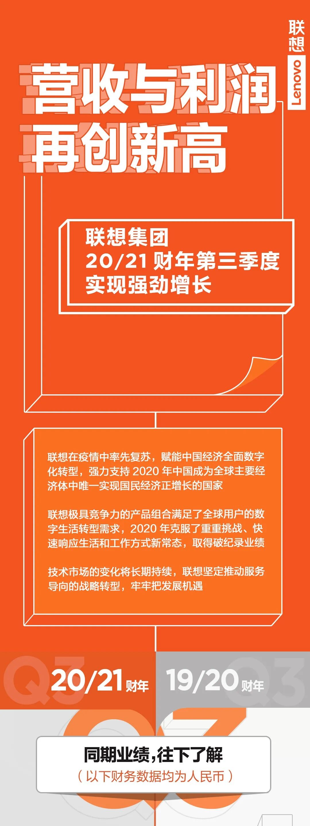 导读:联想集团20/21财年第三季度营收与利润再创新高!