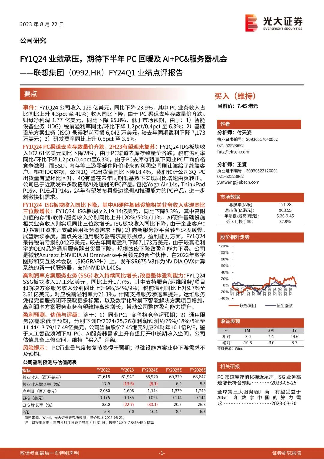 光大证券: 期待 PC 回暖及 AI+PC&服务器机会 维持买入