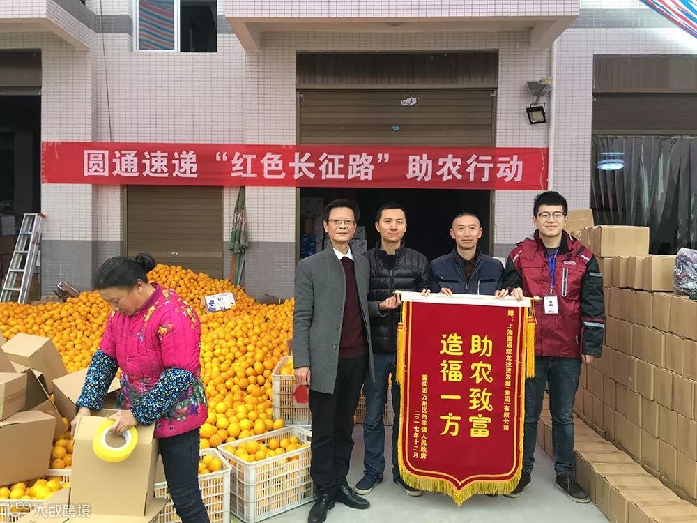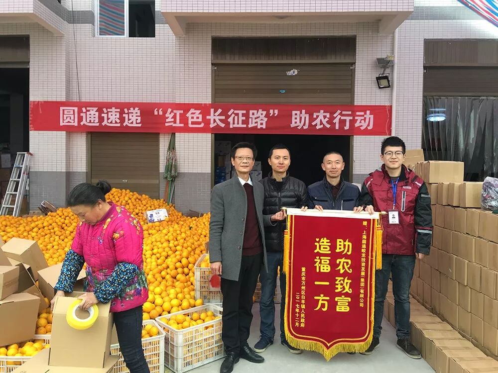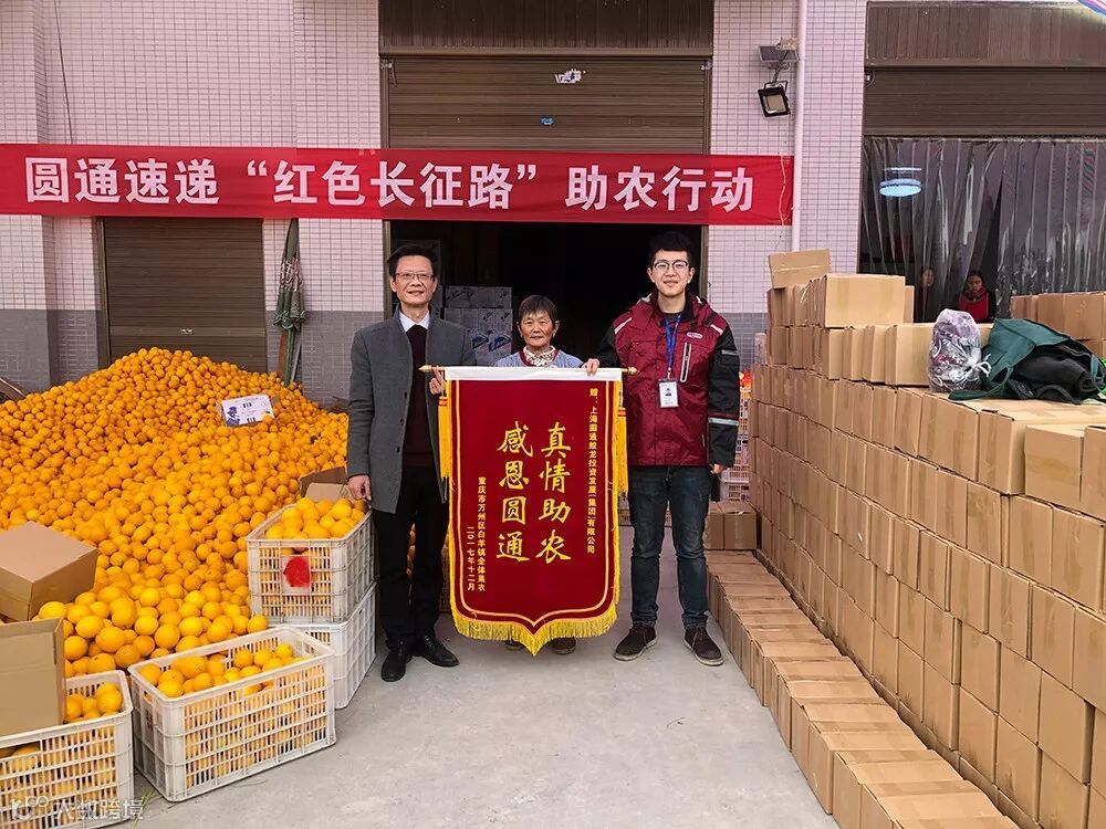 日前,重庆市万州区白羊镇人民政府与当地果农给圆通送来了两面锦旗:“造福一方,助农致富”“感恩圆通,真情助农”。