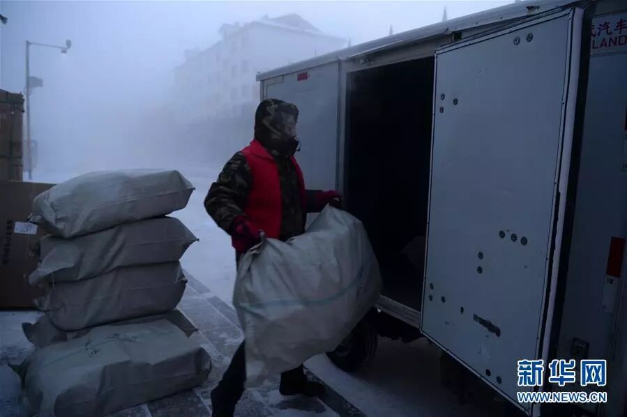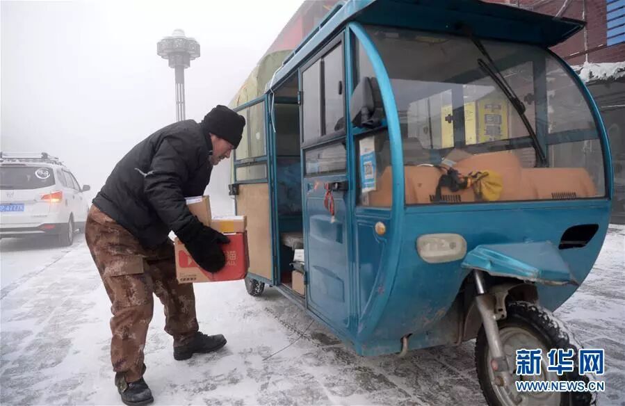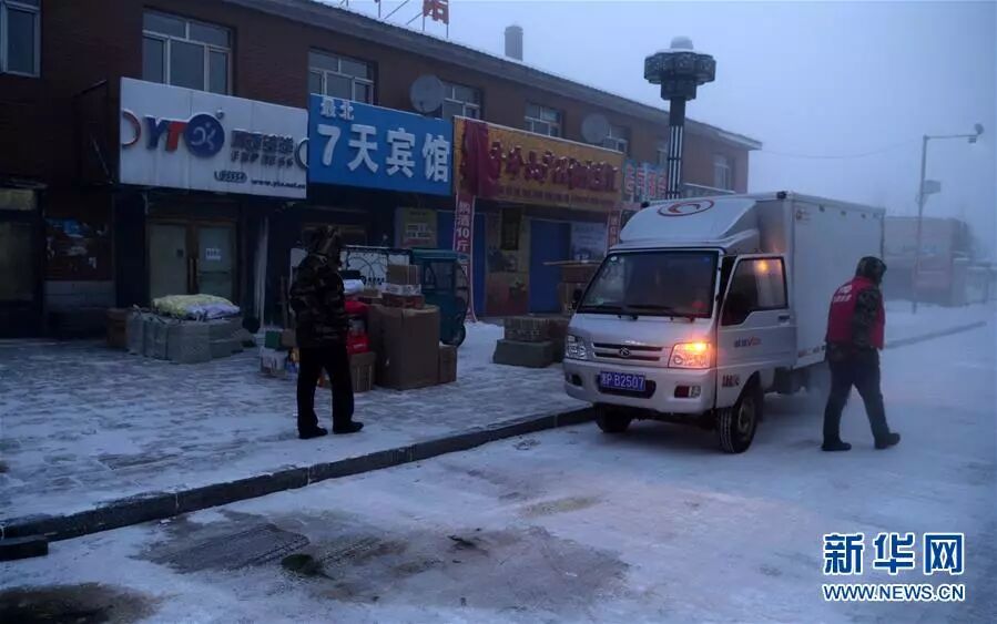 1月24日,我国最北县城黑龙江省漠河县气温达到零下44摄氏度。当日清晨,冰雪覆盖的大街上行人稀疏。为了不耽误派件,圆通速递漠河加盟网点的快递员天没亮就冒着严寒开始工作,以最快的速度将快件送到百姓手中。