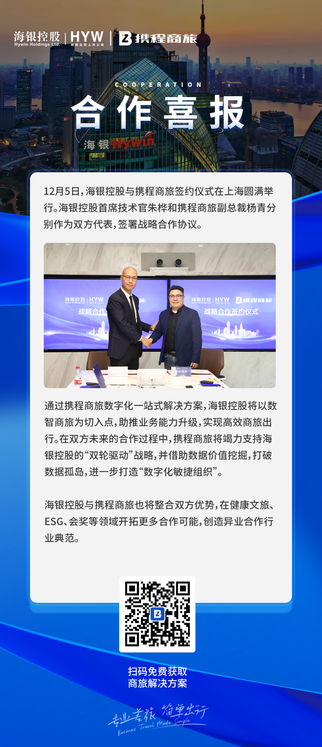 导读:携程商旅联合海银控股共谱合作新篇章