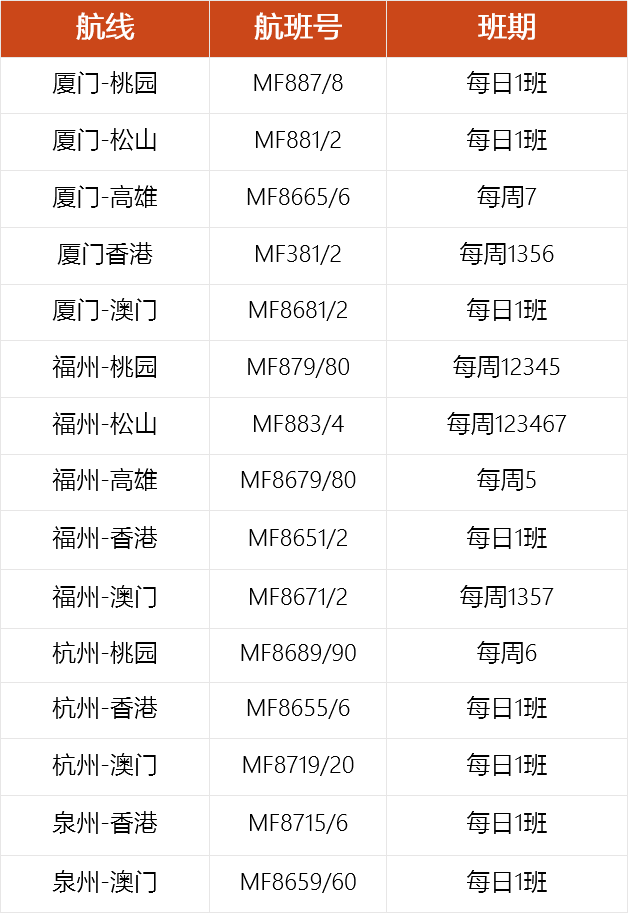 注:以上航班均为当地时间,如遇航班变动,请以实际查询为准。