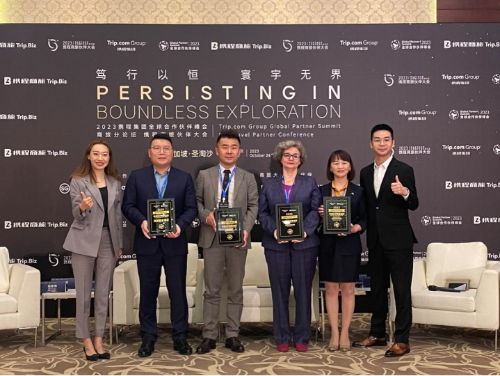 2023年10月24日,于新加坡举办的【笃行以恒 寰宇无界】B+携程商旅伙伴大会圆满落幕,此次活动邀请了众多与携程商旅密切合作的酒店伙伴,并且为4家携程商旅好评榜上榜酒店颁发了“年度商旅好评酒店”奖项。携程商旅酒店供应链华北区域总监赵楠楠主持颁奖仪式,获奖酒店有山东尚儒沃德酒店管理有限公司、扬州乔家专注酒店管理有限公司、合肥栢景朗廷酒店及深圳若玺酒店,这些酒店均在携程商旅平台获得较高的用户评分、客户活跃度及回购率。