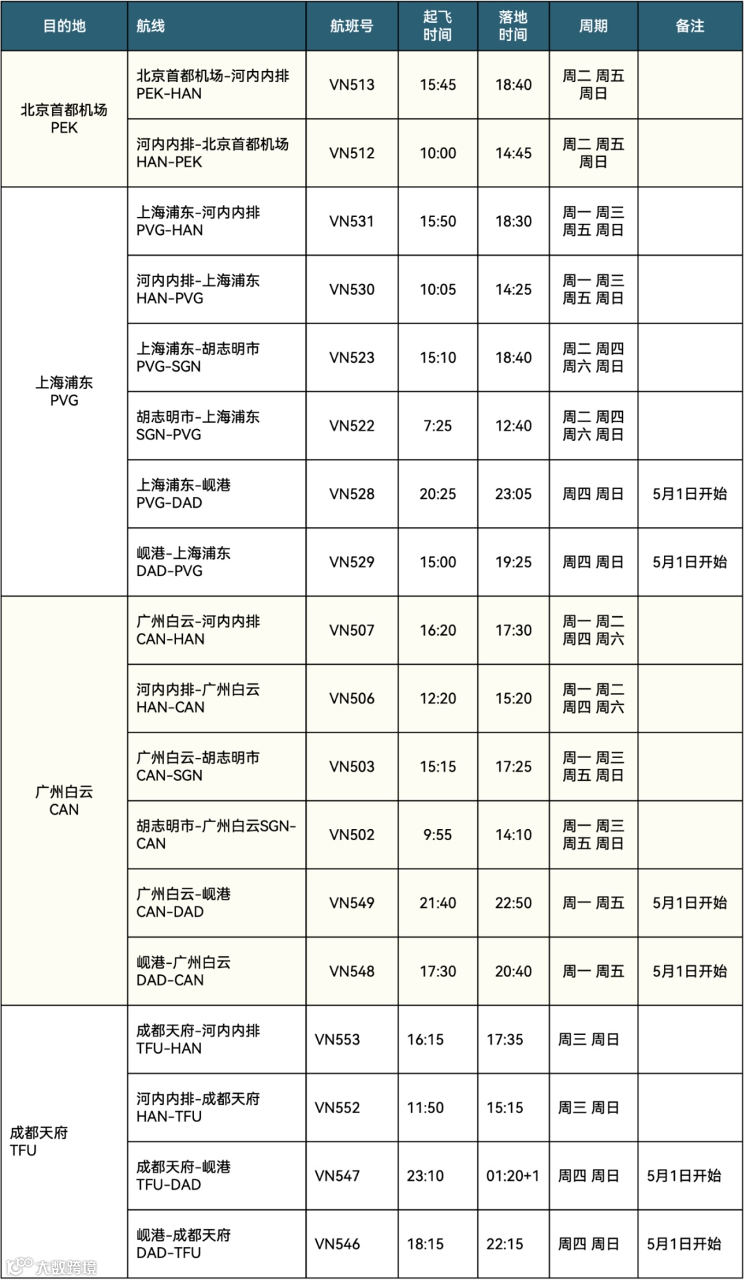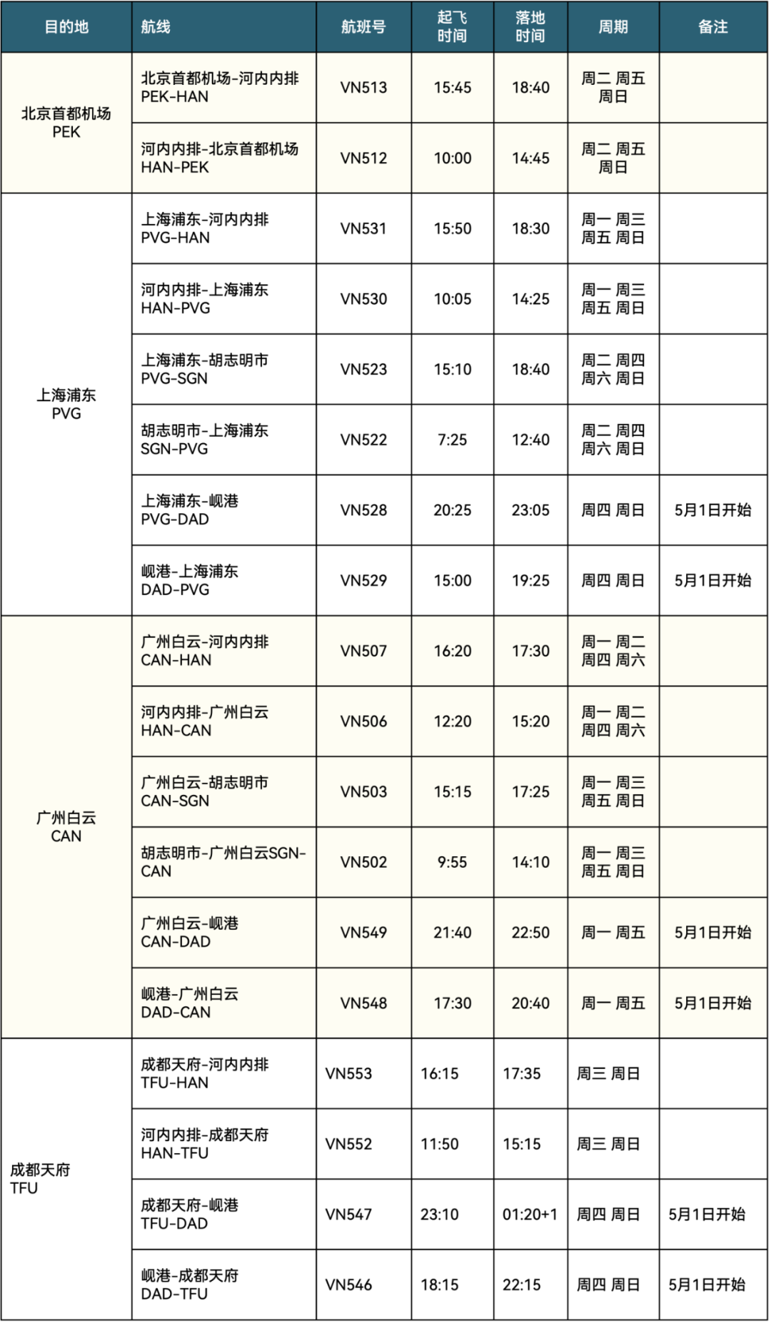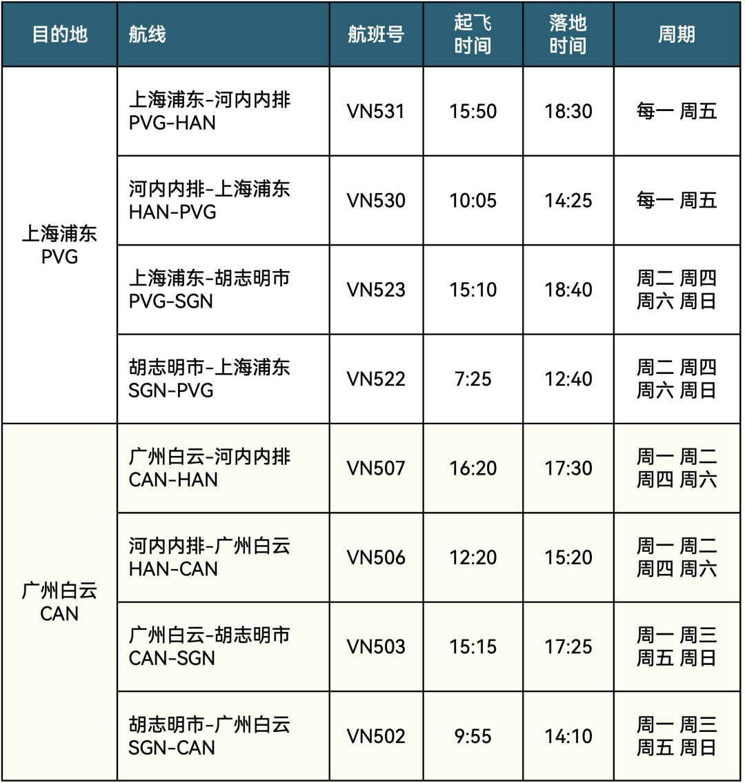 越南航空即将于3月1日起执行2023年夏季航班时刻表