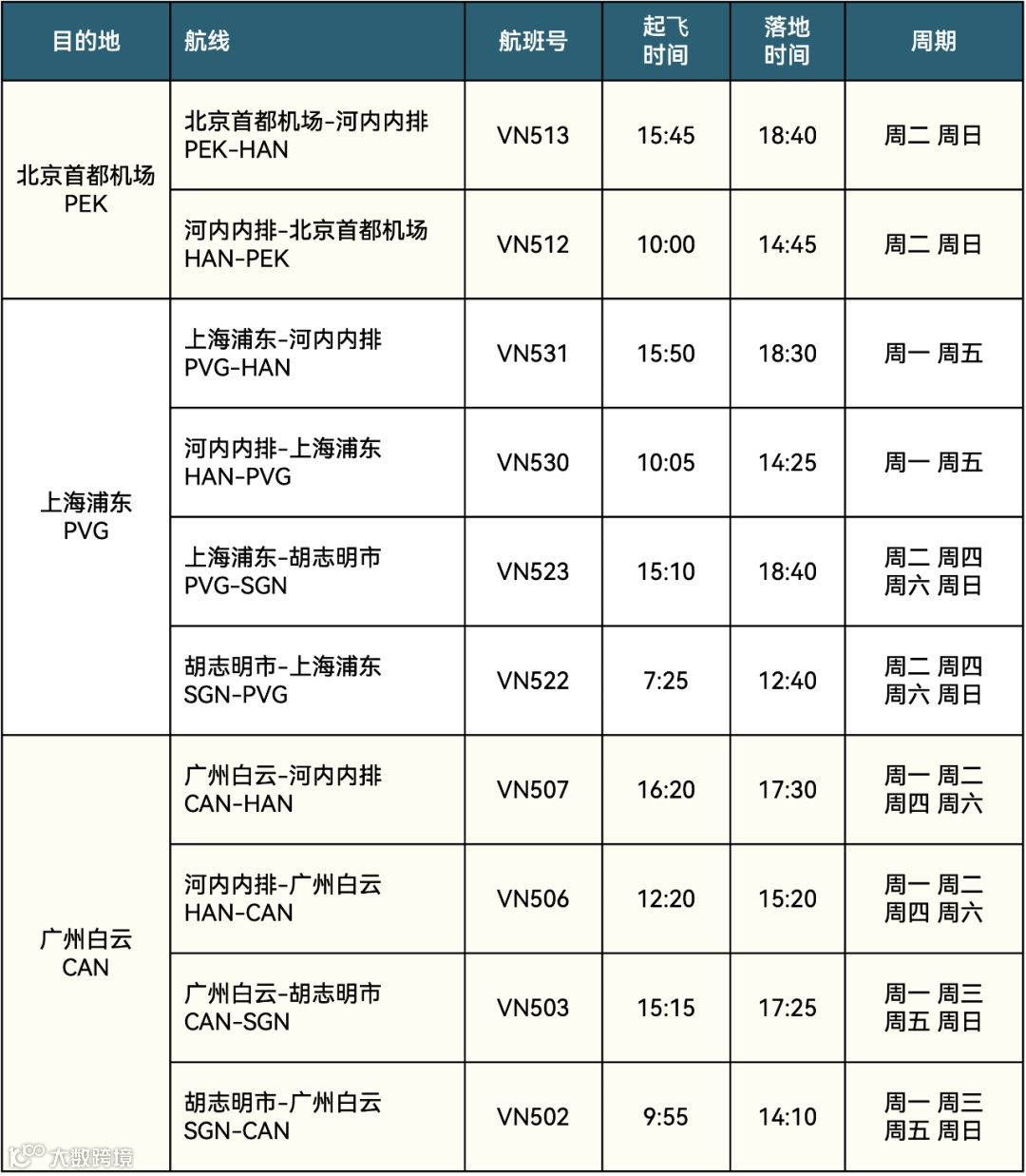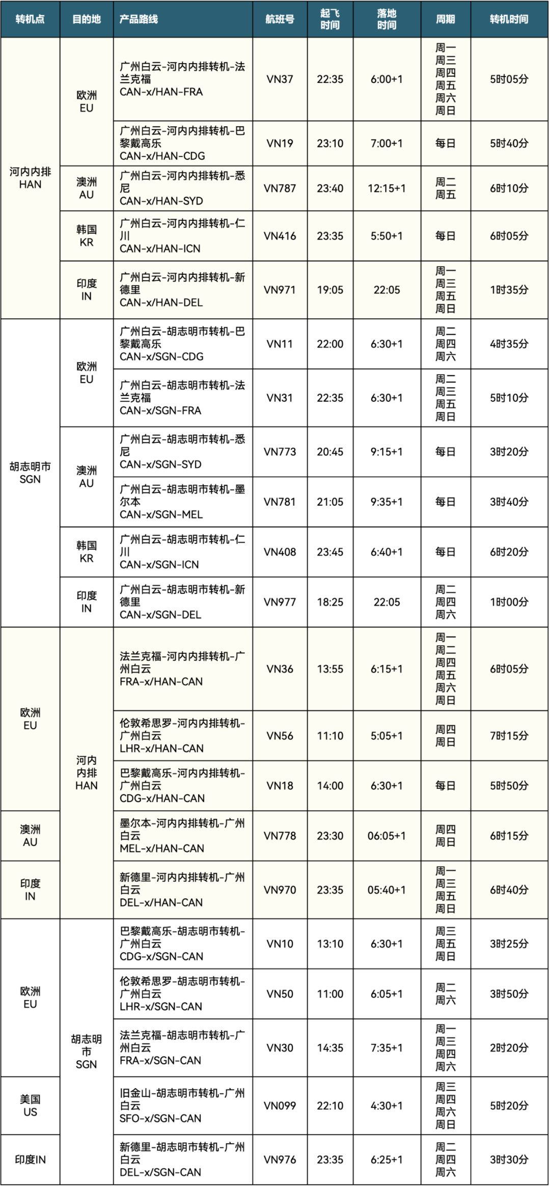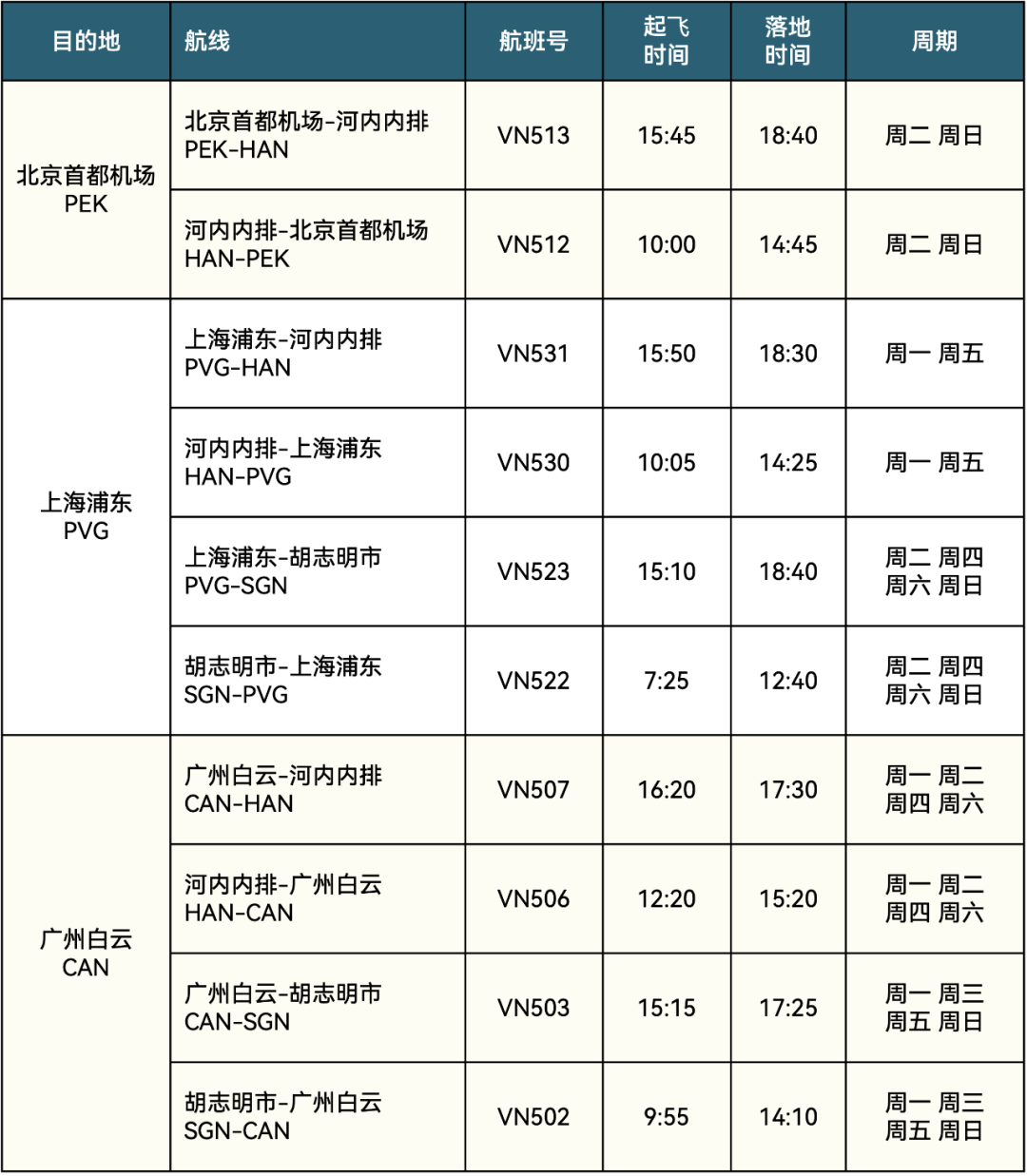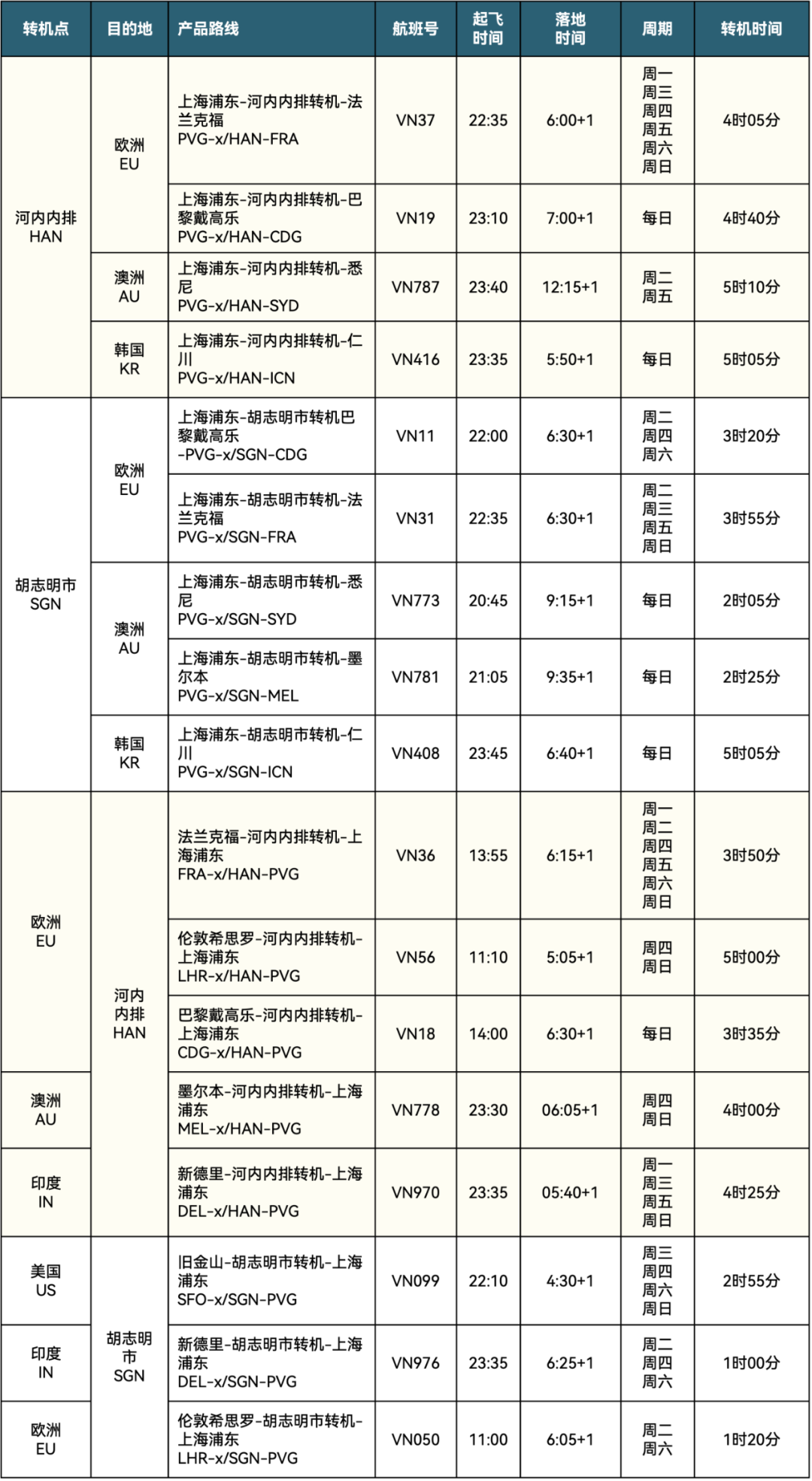 越南航空即将于3月1日起执行2023年夏季航班时刻表