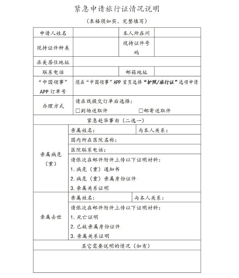 中国驻美国大使馆:紧急人道事由领事证件申请“绿色通道”办理须知